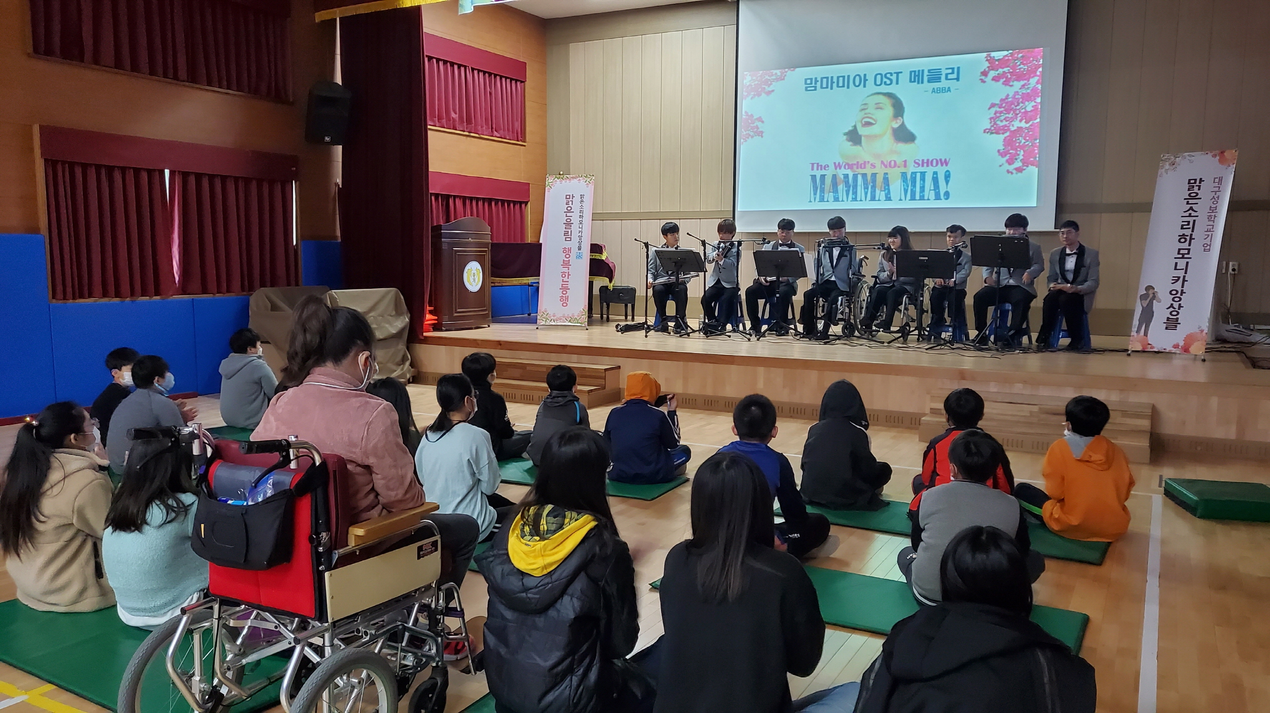 | 봉계초등학교(교장 문대동)는 2학기 장애공감교육주간 프로그램의 일환으로 10월 23일 대구성보학교 학교 기업인 맑은소리하모니카앙상블연주단을 초청하여 연주회를 가졌다.