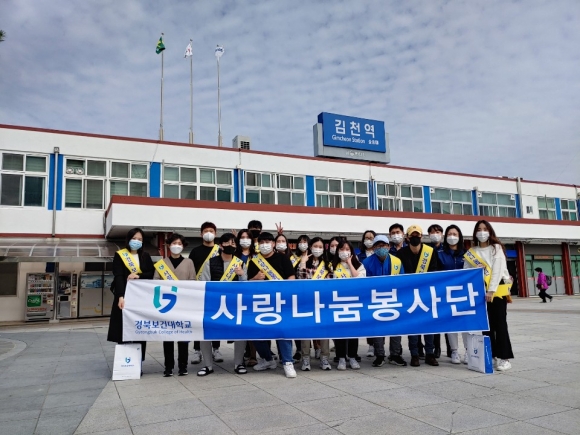 경북보건대학교 사랑나눔봉사단, 지역코로나19예방 버스승강장 청소 및 소독봉사 실시