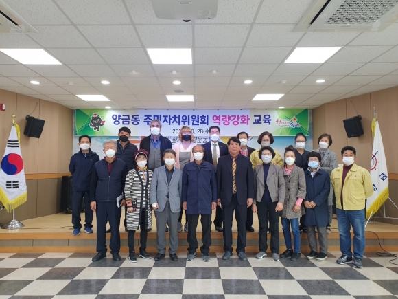 | 양금동주민자치위원회(위원장 강준규)는 28일 양금동주민센터 2층 회의실에서 주민자치위원을 대상으로 역량강화 교육을 실시했다. 이번 교육은 주민자치위원의 역량 강화를 통해 주민의 편의와 복리를 증진하고 주민자치 기능을 강화하여 지역공동체 형성에 기여하고자 마련됐다.
