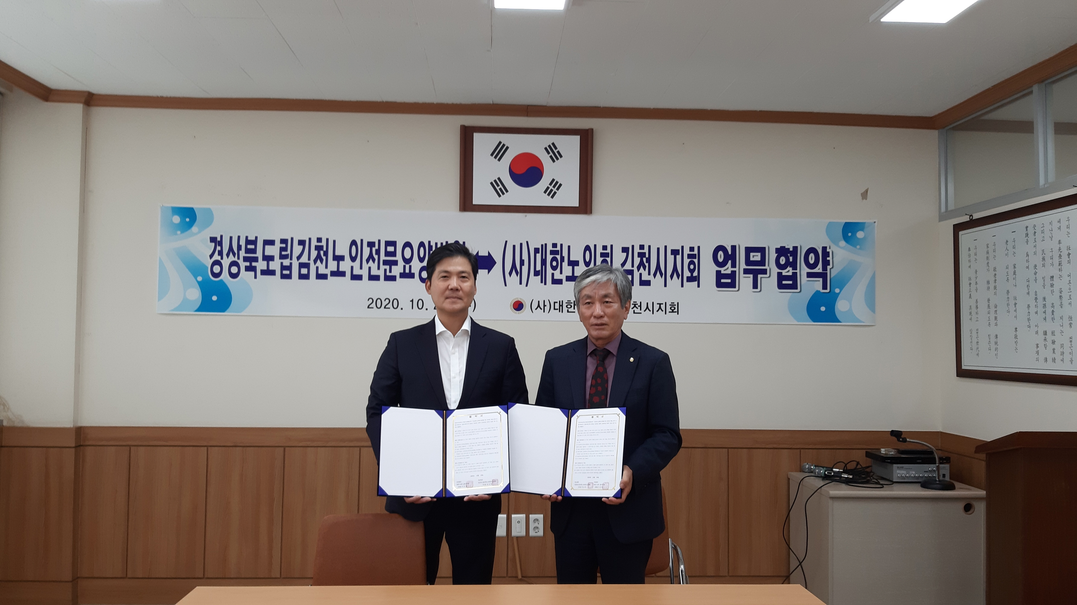 | (사)대한노인회김천시지회와 어르신들의 건강증진 및 예방에 이바지하는 경상북도김천도립전문요양병원과 상호 업무협약 체결을 했다.