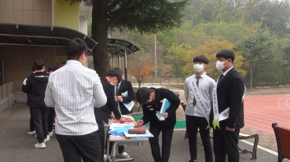 | 성의중학교(교장 안중기)는 10월 28일(수) 등굣길에 사과데이(애플데이) 행사를 실시하였다. 학생회장단과 또래상담반 학생 중심으로 등교하는 학생들 대상으로 행복한 하루의 시작을 열었다.