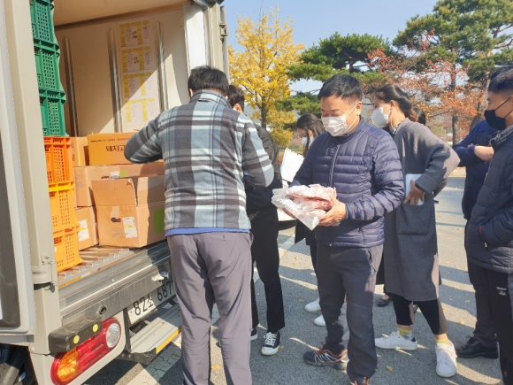 | 대한한돈협회 김천시지부(지부장 김이동)는 지난 10월 28일 김천시를 방문해 어려운 이웃에게 전해 달라며 300만원 상당의 돼지고기 277kg를 전달했다.