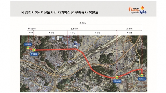 김천시는 기간통신사업자에게 도로개설공사 추진 상황에 맞추어 통신관로를 구축할 수 있도록 공사 편의를 제공하고, 기간통신사업자는 2,4구간 통신망 공동사용과 1,3구간 통신선로 공동구축, 전체적인 공사 추진을 담당하여 김천시에 편의를 제공한다. 서로 협력하여 동시에 공사를 추진함으로 김천시 10.7억원, 기관통신사업자는 8.5억원의 사업비를 절감하였다.공사는 도입부, 1, 2, 3, 4구간으로 나누어 진행된다.