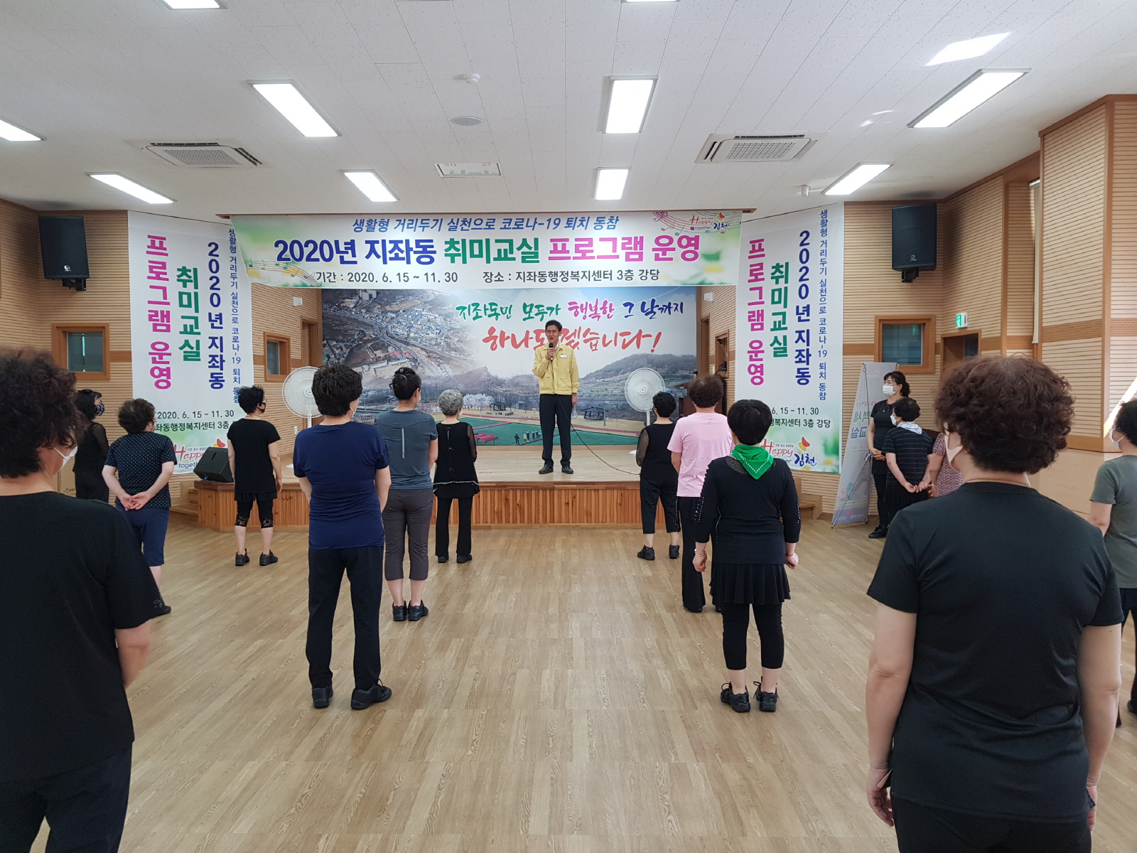 이종탁 지좌동장은 "코로나로 인하여 휴강되었던 취미교실을 재개방하여 주민들에게 신체적 활력은 물론 잠재적 끼를 깨울 수 있는 계기가 되어 활력 넘치고 신나는 장이 될 수 있기를 바라며, 더불어 코로나19 방역수칙을 철저히 준수해 달라“고 당부했다.