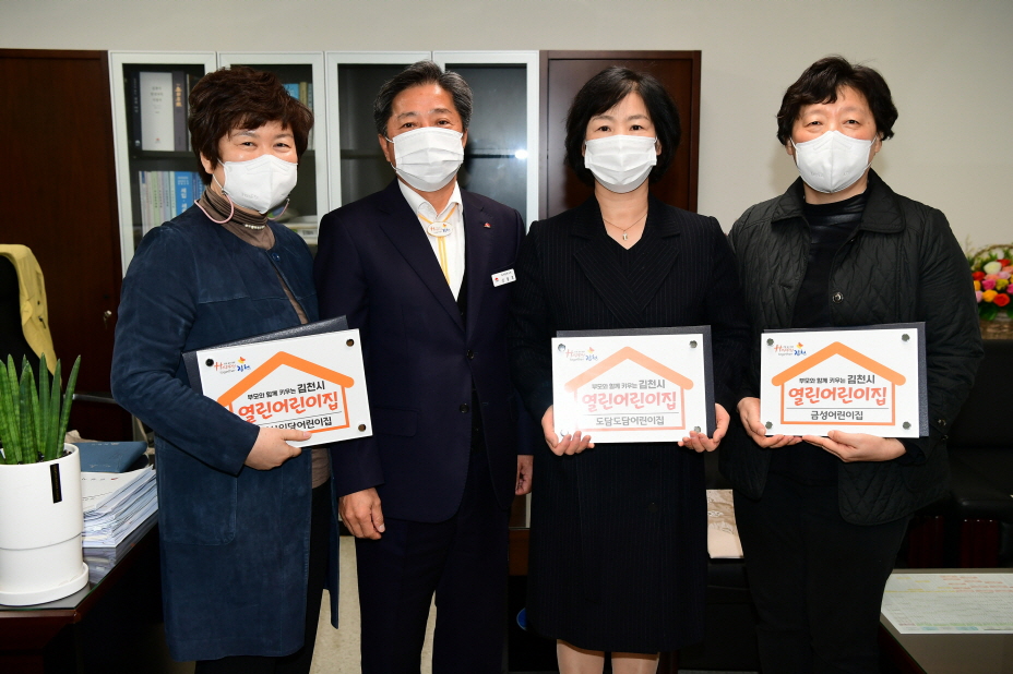 | 김천시(시장 김충섭)는 ‘2020년 열린어린이집’으로 신규 선정된 어린이집 3개소에 대해 5일 선정서 및 현판을 수여했다.