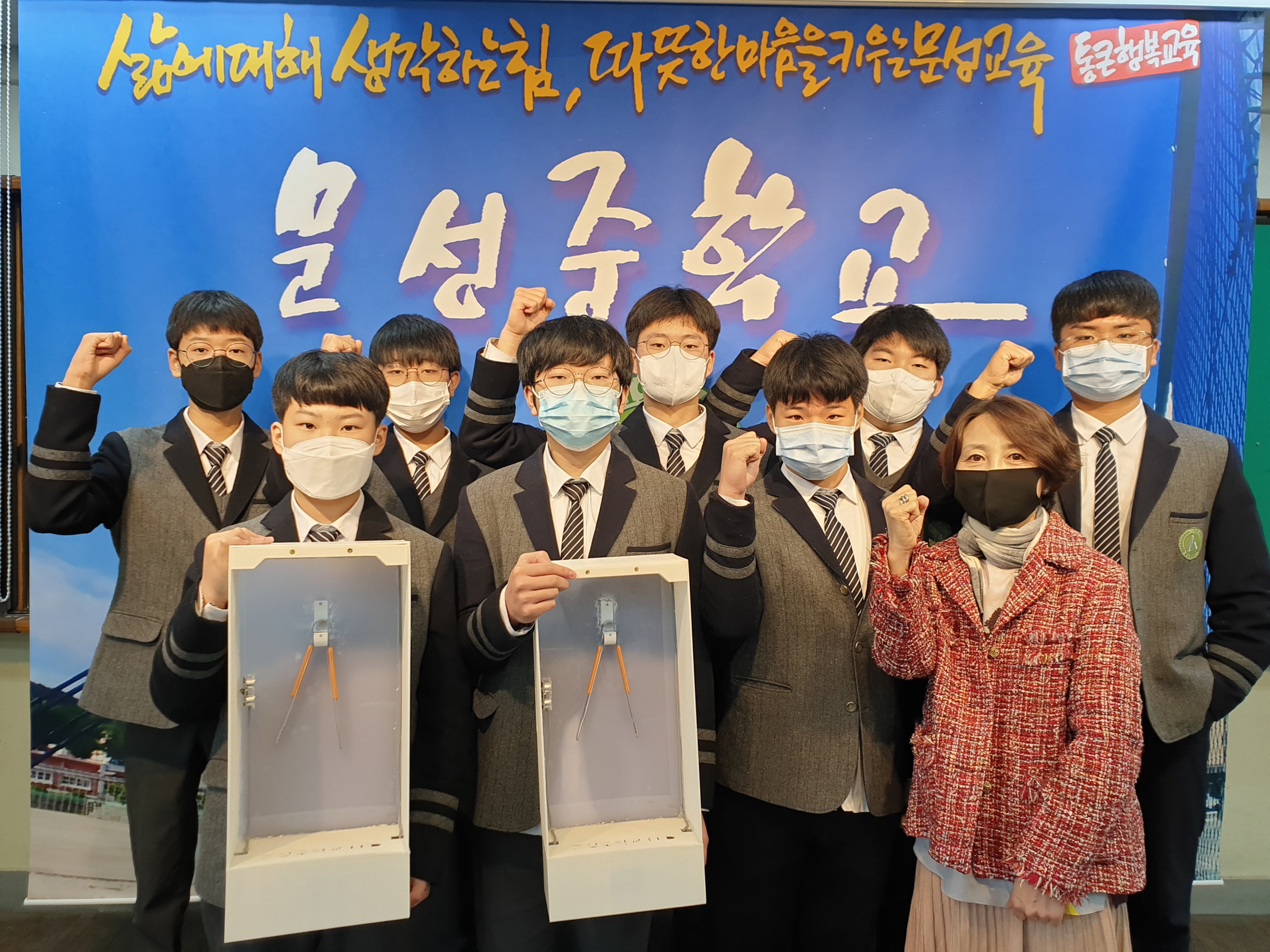 이재훈(2년) 군은 “팀 동료들의 협력과 선생님의 지도로 좋은 결실을 보아 감사하다. ‘친환경 UV 자동 안심 살균기’가 많이 알려져서 모든 사람에게 도움을 주었으면 좋겠다”고 포부를 밝혔다.