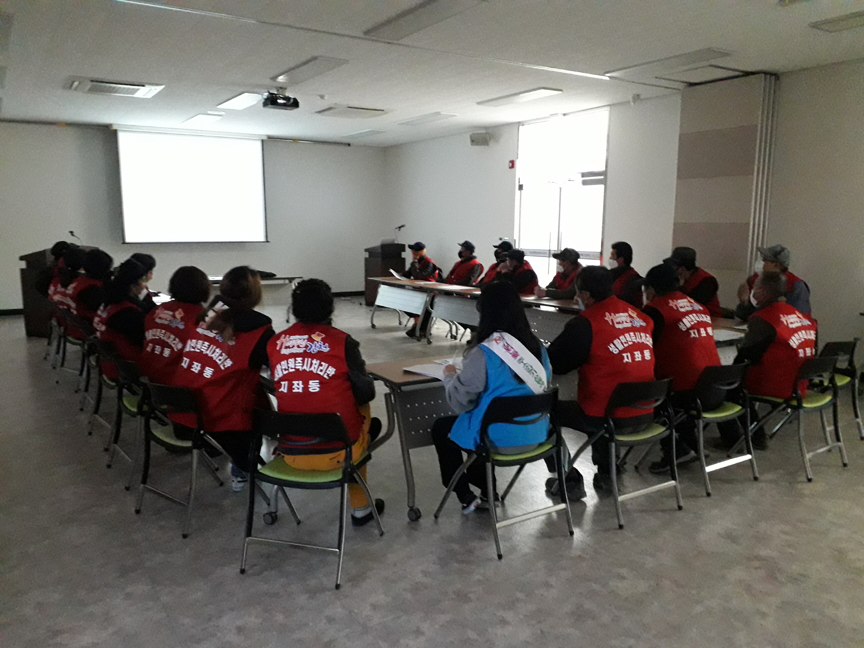 | 지좌동(동장 이종탁)은 지난 11월 9일에 지좌동 지역공동체일자리 참여자들과 이번에 새로 선발된 코로나19 극복희망일자리참여자들로 구성된 “생활민원즉시처리반”의 발대식을 가졌다. 이번 발대식은 지좌동 관내의 불법쓰레기투기단속, 생활쓰레기 배출방법 지도와 계몽 실시 등 관내에서 발생하는 생활민원 등을 빠른 시간내에 처리할 수 있는 현장요원들을 배치하는 자리였다.