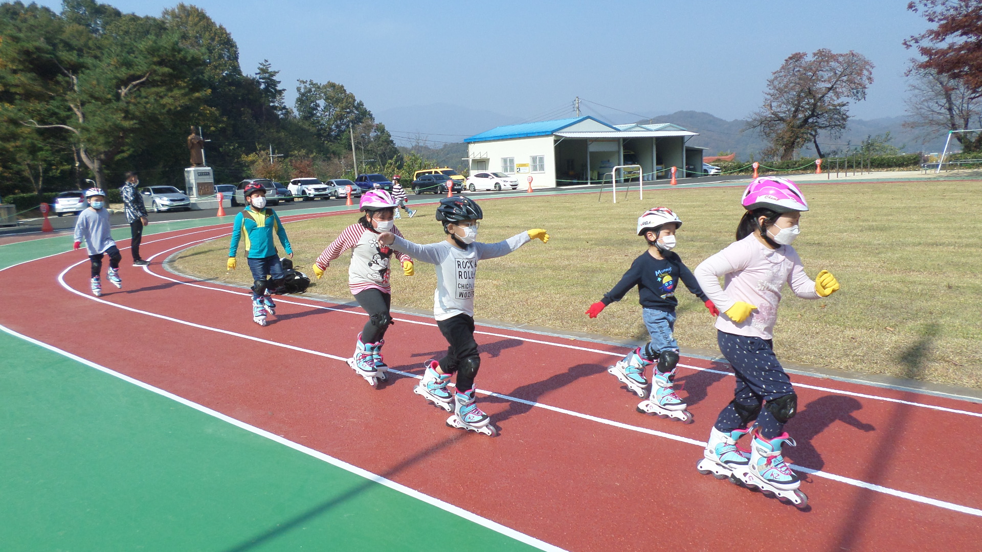 | 조마초등학교(교장 신훈식) 전교생은 11월 10일(화), 창의적체험활동 및 체육 시간을 활용하여 인라인 스케이트 수업에 참가했다.