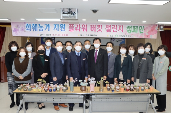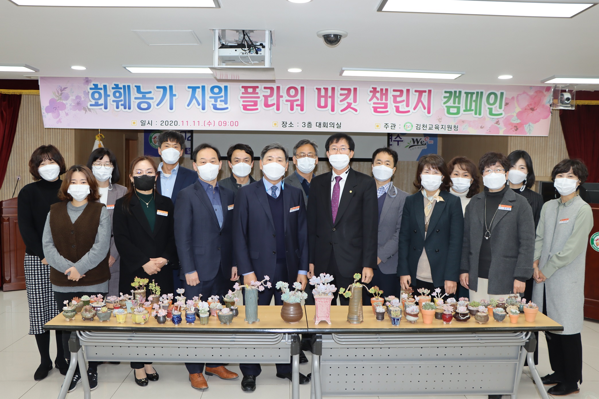 이번 플라워 버킷 챌린지는 코로나-19로 인해 경제적 어려움을 겪는 화훼농가를 돕기 위한 방안으로 한국도로공사에서 시작이 되었으며 김천시청을 거쳐 김천교육지원청에서 챌린지 행사가 이루어졌다. 김천교육지원청은 코로나-19 대응 및 각종 업무들로 지친 직원들에게 화훼농가의 어려움을 되돌아보는 기회를 제공하고 생동감과 활력을 주고자 청내 전직원들에게 다육이 화분을 분양해 주었다.