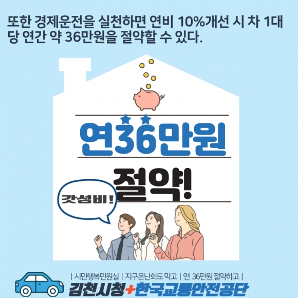 환경부, 한국교통안전공단 자료에 따르면, 경제운전을 실천하면 자동차 배출가스가 감소하여 지구온난화를 막는데 도움이 되며 아울러 연비 10%개선 시 차 1대당 연간 약 36만원을 절약할 수 있다.