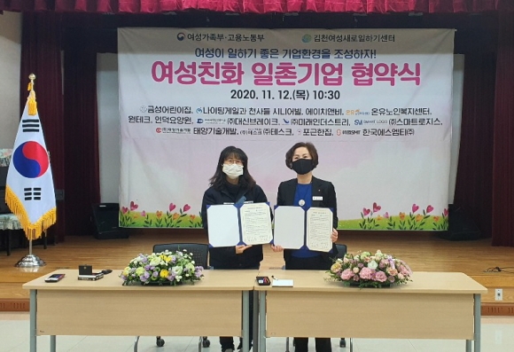 이번 협약은 경력단절여성의 고용확대 및 유지, 여성친화 기업문화를 조성하기 위해 마련됐으며, 앞으로 김천시와 기업체 상호 간 유기적 협력체계 구축을 위해 적극 노력할 것을 약속했다.