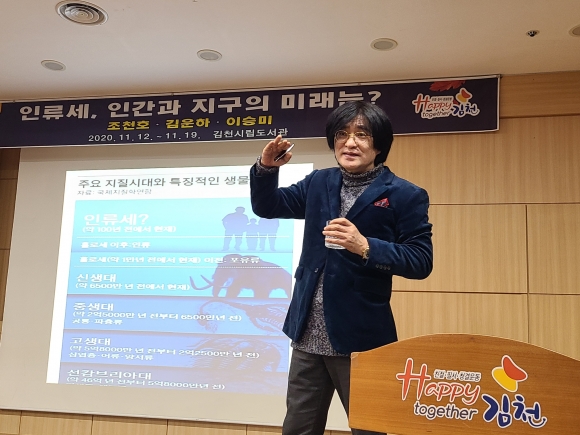 | 김천시(시장 김충섭)에서는 이달 ‘인류세, 인간과 지구의 미래는?’을 주제로 놓고 각계 전문가 3인을 초청, 시립도서관 시청각실에서 2주에 걸쳐 강연을 진행하며 2기 <함께 걷는 인문학>을 운영하고 있다.