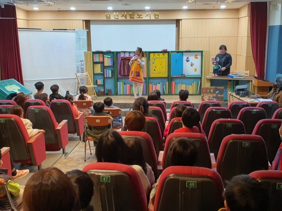 | 김천시립도서관에서 지난 11월 14일(토)에 공연한 인형뮤지컬<도서관 생쥐>에 어린이와 부모님이 참석하여 성황리에 공연을 마쳤다.