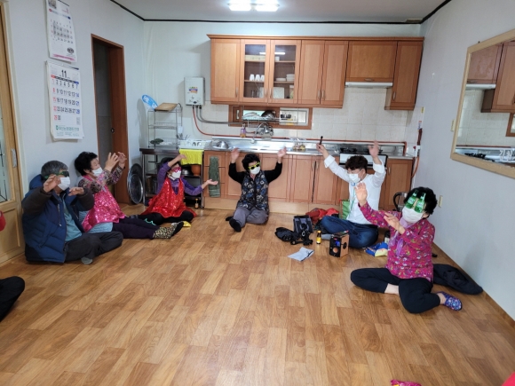첫날인 18일(수)에는 평촌, 장뜰, 수도 경로당에서 웃음치료 프로그램 일정이 시작되었으며, 사전에 참석 주민에게 마스크 등 방역 물품 배부, 방역수칙 준수를 당부함으로써 주민 안전을 최우선으로 고려한 가운데 실시되었다.