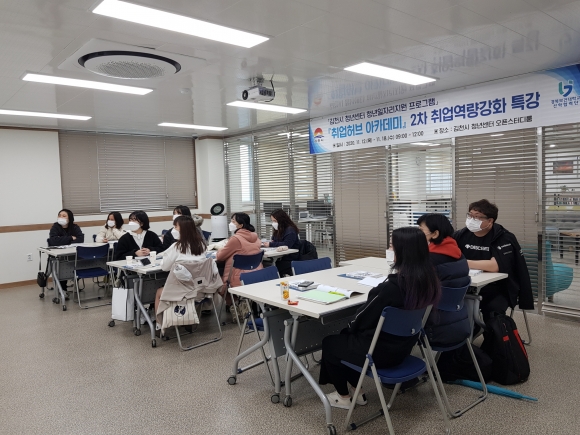 코로나19로 인해 취업 경기 침체가 장기화되면서 청년들의 취업에도 어려움이 예상된다. 이에 김천시 청년센터는 김천시 청년들의 취업을 위한 취업전략을 제공하는 등 취업 경쟁력을 높이기 위해 노력하고 있다. 취업 허브아카데미의 한 수강생은 “ 취업특강을 통해 입사서류의 기본부터 면접까지 심화적인 내용을 다룸으로써 취업에 대한 자신감이 생겼다.” 라고 말했다.