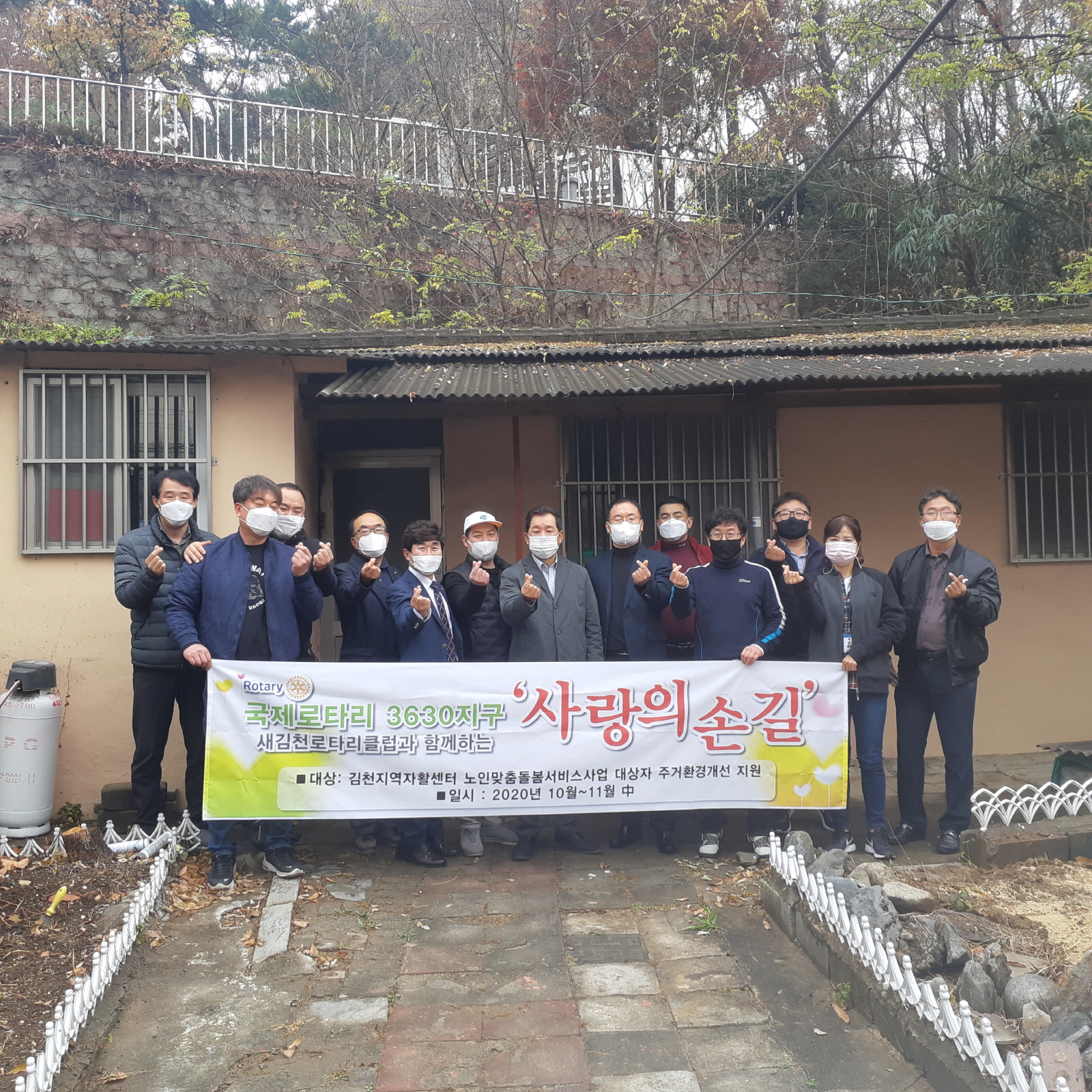 | 김천지역자활센터(관장 한상호)는 지난 10월부터 11월까지 새김천로타리클럽의 도움을 받아 노인맞춤돌봄서비스 대상자 중 주거시설이 열악한 어르신을 선정하여 집수리, 마당정비, 생활용품지원, 난방유 등을 제공하고 11월 18일 준공식을 가졌다.