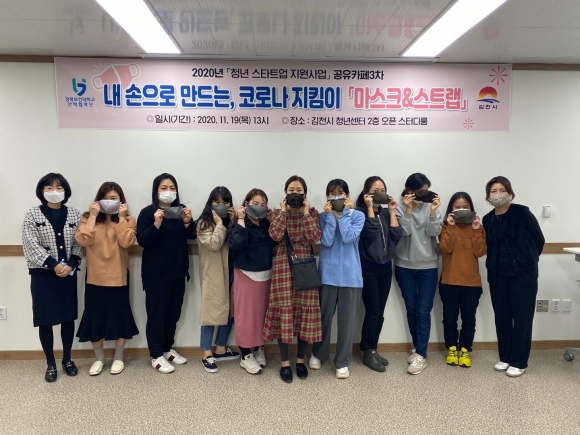 경북보건대학교 산학협력단이 주관기관으로 진행하는 “청년스타트업 지원사업”은 청년들에게 아지트 공간을 제공함으로써, 배움의 기회를 갖고 체험적 취창업의 역량강화 계기를 마련하고자 한다. 청년센터에서는 2020년 11월 19일(목요일)에 “마스크&스트랩 제작”프로그램을 진행하였으며, 이는 코로나19에 대비하여 핸드메이드로 마스크를 제작하는 프로그램이다. 궂은 날씨에도 불구하고 11명의 참가자가 오픈 스터디룸에서 작품을 제작하였으며, 선택이 아닌 필수가 된 마스크를 직접 만들어 보는 뜻깊은 시간이었다고 하였다. 청년스타트업 지원사업 공유아지트 프로그램은 11월 23일(월), 11월 25일(수) ‘뷰티클래스’, 11월24일(화), 11월26일(목) ‘공예제작’ 공유아지트 클래스를 진행할 예정이며, 11/24(화)에 시작되는 ‘보컬트레이닝’은 직장인들도 참가할 수 있도록 야간에 운영된다.