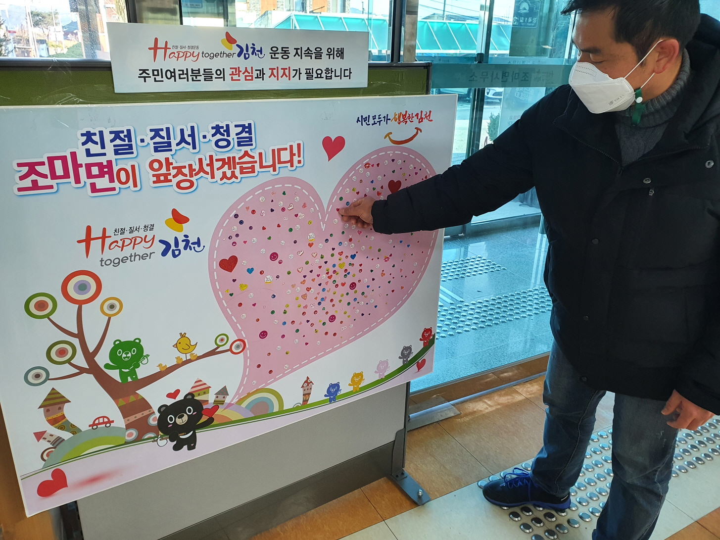 이번 전시는 1년 동안의 여러 사회단체의 코로나19 방역활동 및 사회 공헌 활동“Happy together 김천” 운동인 친절, 청결, 질서 관련 활동 등을 한 자리에 담아 놓았다.