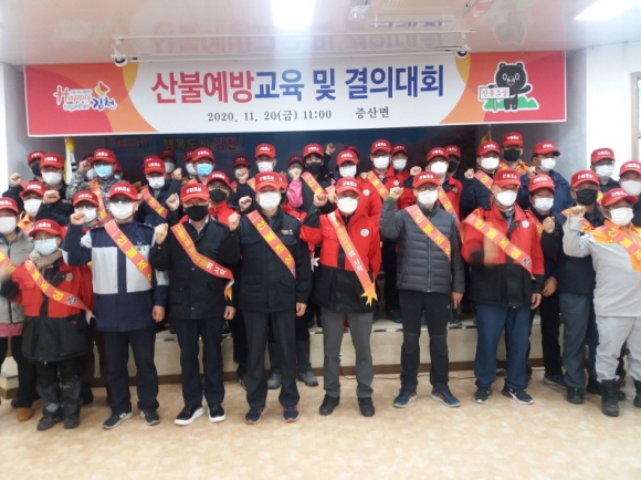 김명환 증산면장은 “코로나 19로 인하여 모두가 힘들고 어려운 시기지만 산불예방을 위하여 많은 주민들이 참석하여 주셔서 감사드리며 산불이 발생하면 그 동안 소중하게 가꾸어온 산림자원이 한 순간에 잿더미가 되는 만큼 주민모두가 한마음이 되어 산불예방에 적극 동참하여 주시기 바란다”고 당부하였다.