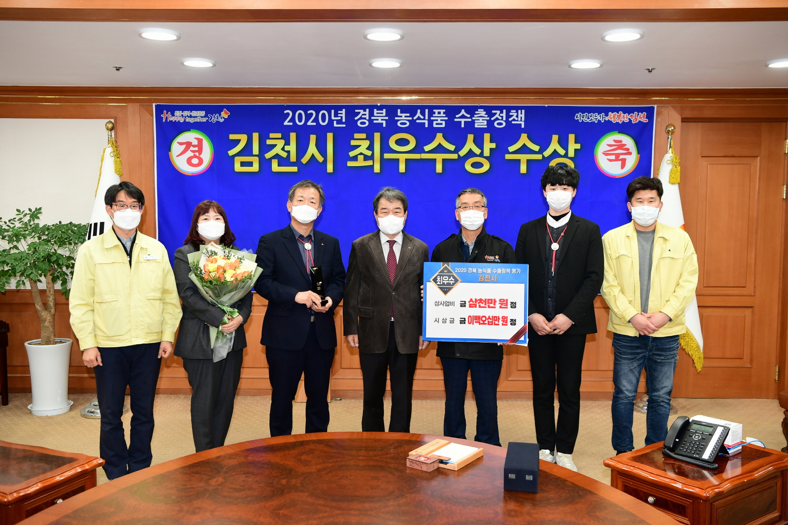 |  | | | ⓒ 김천내일신문 | | 김천시는 지난11월 24일 2020년 경상북도 수출정책 시군평가에서 최우수 기관으로 선정되는 영예와 함께 상사업비 3,000만원과 시상금 250만원을 확보했다고 밝혔다. 이번 수상은 경상북도 23개 시군을 대상으로 수출달성도분야, 수출기반조성 분야, 해외시장 개척 및 마케팅 분야, 수출정책참여 분야 등 1년간의 수출성과를 평가한 것으로 2018년, 2019년 2회 연속 우수상에 이어 2020년에는 최우수 기관상을 수상하였다. 특히 이번 평가에서 김천시는 수출전담부서 신설에 따른 업무전문화와 해외시장개척을 위한 기관장의 노력도를 높이 평가 받아 ‘최우수’기관상을 수상하게 되었다. 지난해에는 김천시장을 필두로 한 베트남 무역사절단을 파견해 베트남 K-Market과 수출협약식 체결, 농식품 수출 확대를 위한 상호협력 및 친선교류 추진, 홍보판촉행사와 현지 바이어 초청 상담회 개최, K-Market 골든팰리스점 외 6개소에서 판매홍보 행사를 한 달 동안 지속적으로 진행해 베트남 수출물량이 대폭 증가하였고, 특히 샤인머스켓포도는 17년대비 수출량은 356%증가한 292톤, 수출금액은 323%증가한 352만달러의 성과를 거두었다. 김충섭 김천시장은 “ 코로나19 장기화로 많은 농업인이 판로에 어려움을 격고 있는 만큼 농특산물의 해외 수출시장 개척과 수출품목을 다변화를 위해 끊임없는 노력을 이어 나갈 것”과 “수출 인프라 확대와 적극적인 수출지원 정책으로 가격 경쟁력을 갖춘 농특산물 수출품을 육성하겠다”고 밝혔다. |