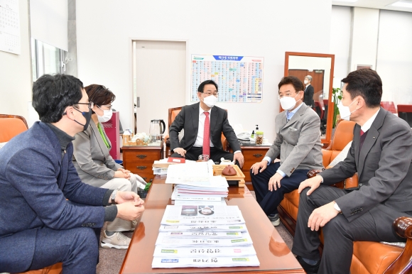 한편, 이날 국회 방문에는 이강덕 포항시장도 함께 동행했으며, 김정재, 김병욱 국회의원도 함께 힘을 보탰다. |