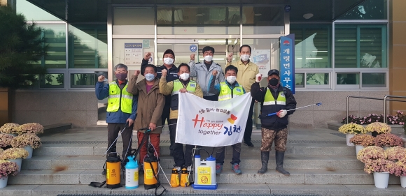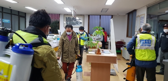 | 개령면 자율방범대(대장 구우학)는 지난 11월 25일 코로나19 확산방지를 위해 관내 다중이용시설 및 공공시설에 방역소독 봉사를 실시했다.