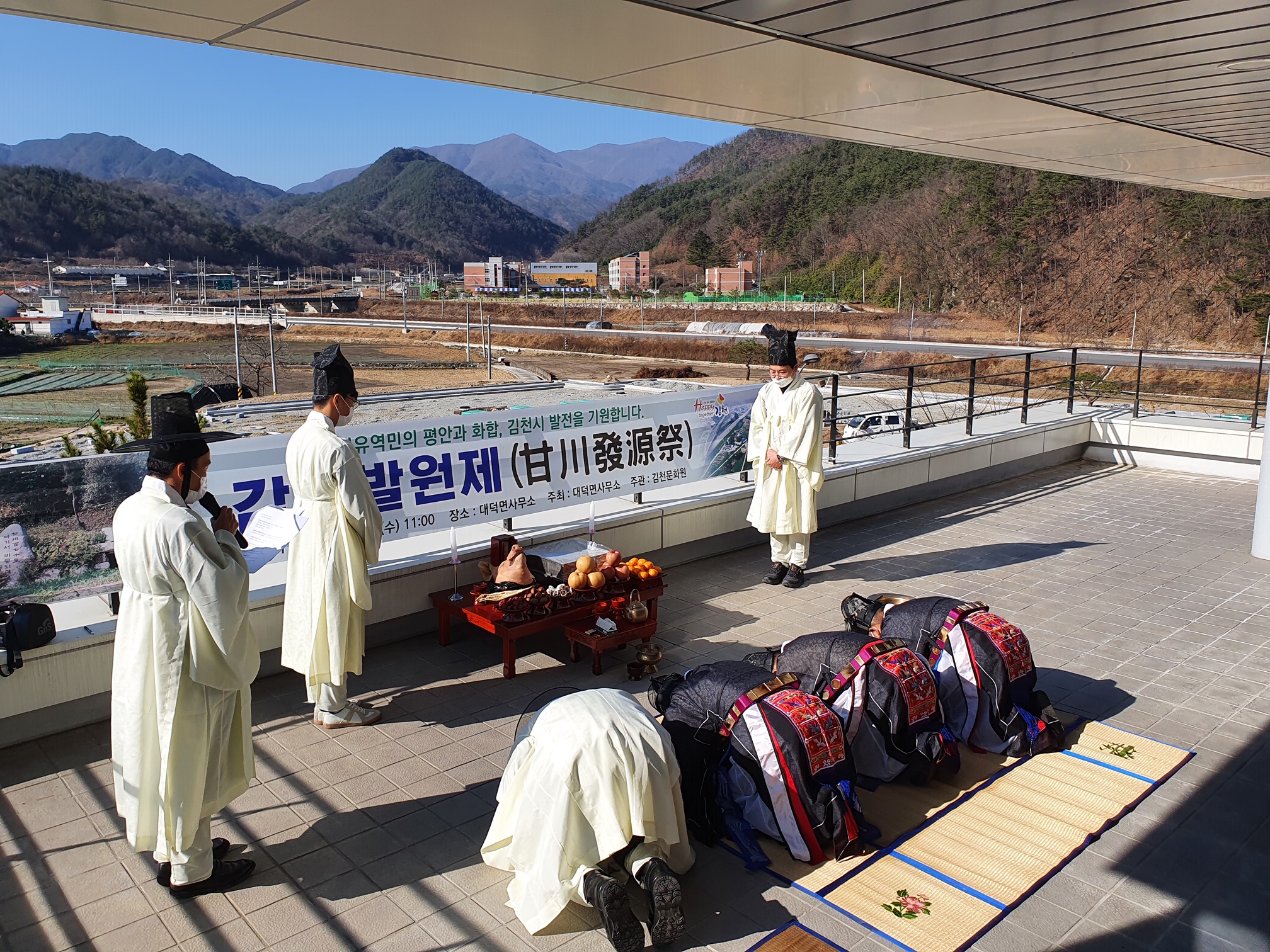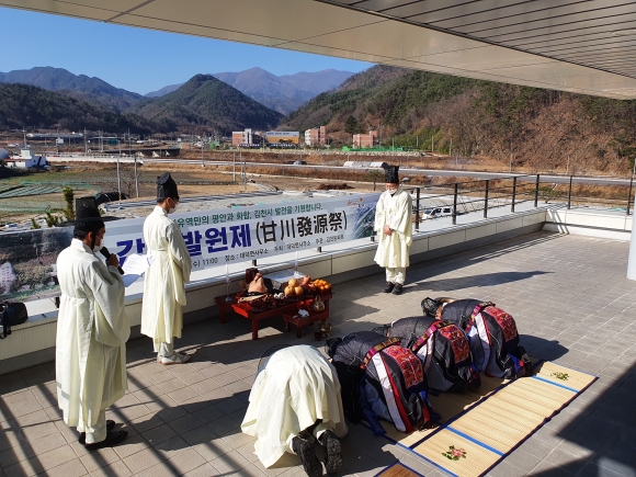 | 대덕면은 지난 25일 대덕면사무소 2층 발코니에서 김천시민의 안녕과 번영을 기리며 2020년 감천발원제를 봉행했다. 이번 감천발원제는 김천을 흐르는 감천의 발원지인 대덕면에서 김천문화원 송기동 사무국장의 집례로 이원용 대덕면장이 초헌관, 이산걸 노인회장이 아헌관, 윤광혁 이장협의회장이 종헌관으로 참석하였다.
