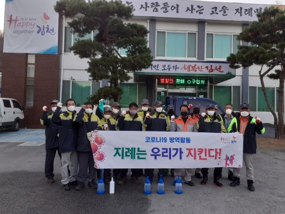 | 지난 25일 지례면 남성의용소방대(대장 이수영)는 최근 코로나19 확산이 계속됨에 따라 청정한 지례면 유지 및 지역사회 감염확산을 방지하기 위해 방역활동을 실시하였다.