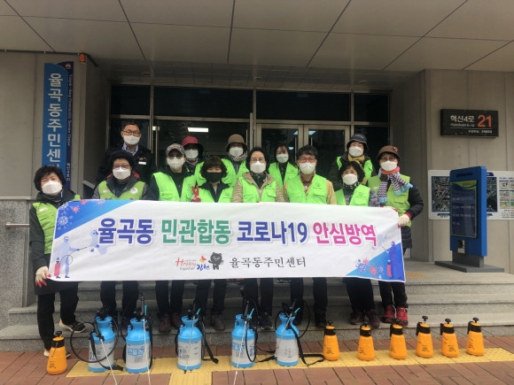 한편, 최근 지역내 코로나 확진자가 다수 발생함에 따라, 율곡동은 각 공동주택 관리사무소에 협조공문을 발송하여 주민 커뮤니티시설 잠정 폐쇄 협조를 구했으며, 관리사무소 요청시 소독약과 손소독제를 지원하고 있고, 개인이 필요시 희석된 소독약을 나눠주고 있다. 또한, 율곡동의 각 단체들은 안산공원과 석정천 산책길을 중심으로 주1~2회정도 자발적으로 방역에 나서는 등 위기극복에 힘을 보태고 있다.