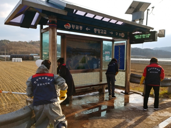 양금동 자유총연맹에서는 유동인구가 많은 버스승강장을 위주로 소독, 방역하는 한편 승강장 환경정비도 함께 실시했다. 승강장의 묵은 때와 먼지를 씻어내고 닦으면서 코로나19가 예방되고 깨끗한 양금동이 되기를 바라는 한마음으로 봉사에 임했다.