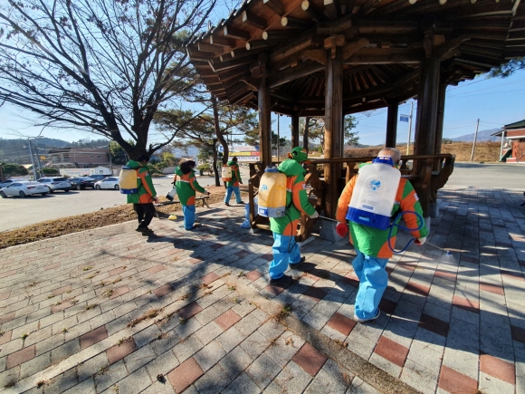 이날 자율방재단(단장 이군찬) 및 농업경영인회(회장 권기용) 20여명은 면민들의 건강과 안전을 위해 면사무소 주변, 종교시설, 파출소, 우체국, 경로당 등 주민이 많이 이용하는 다중이용시설에 대해 방역활동을 펼쳤다.