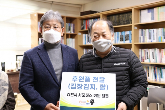 | 파이팅! 김천시 서포터즈(회장 이만수)는 3일(목) 코로나19 확산으로 어려움을 겪고 있는 지역 내 소외계층에게 후원물품을 전달했다.