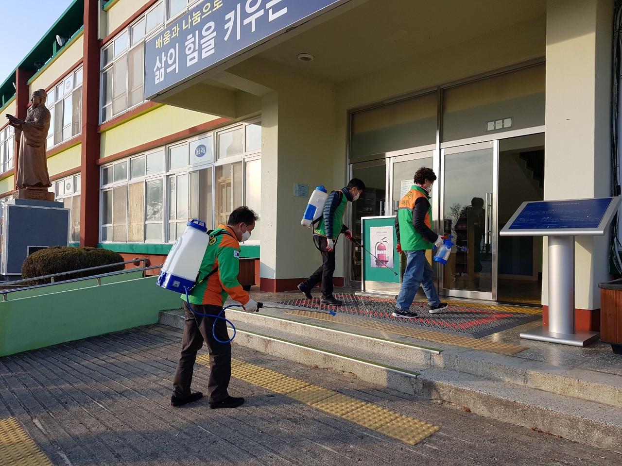 | 감천면 자율방재단(단장 이동상) 회원 7명은 12월 3일 오후 코로나19 바이러스 방역을 위해 감천초등학교를 방문하여 방역활동을 실시하였다.