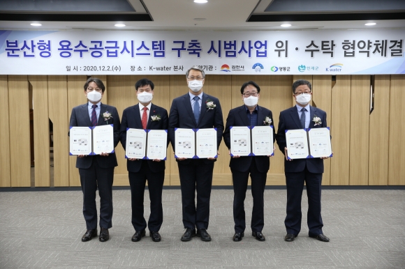 | 김천시와 K-water는 12월 2일 한국수자원공사 본사에서“분산형 용수공급시스템 구축 시범사업 위수탁 협약”을 체결했다.