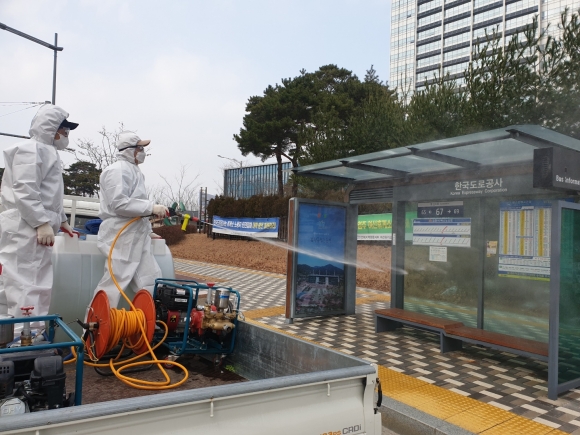 이번 소독활동은 주민들이 많이 이용하는 버스승강장, 공원, 화장실, 운동기구 등 공공이용시설 뿐 아니라 대형마트, KTX역사 주변, 유치원, 육아종합지원센터 등 시민들의 왕래가 잦은 곳과 손이 닿을 수 있는 곳들을 찾아 집중적으로 소독했다.