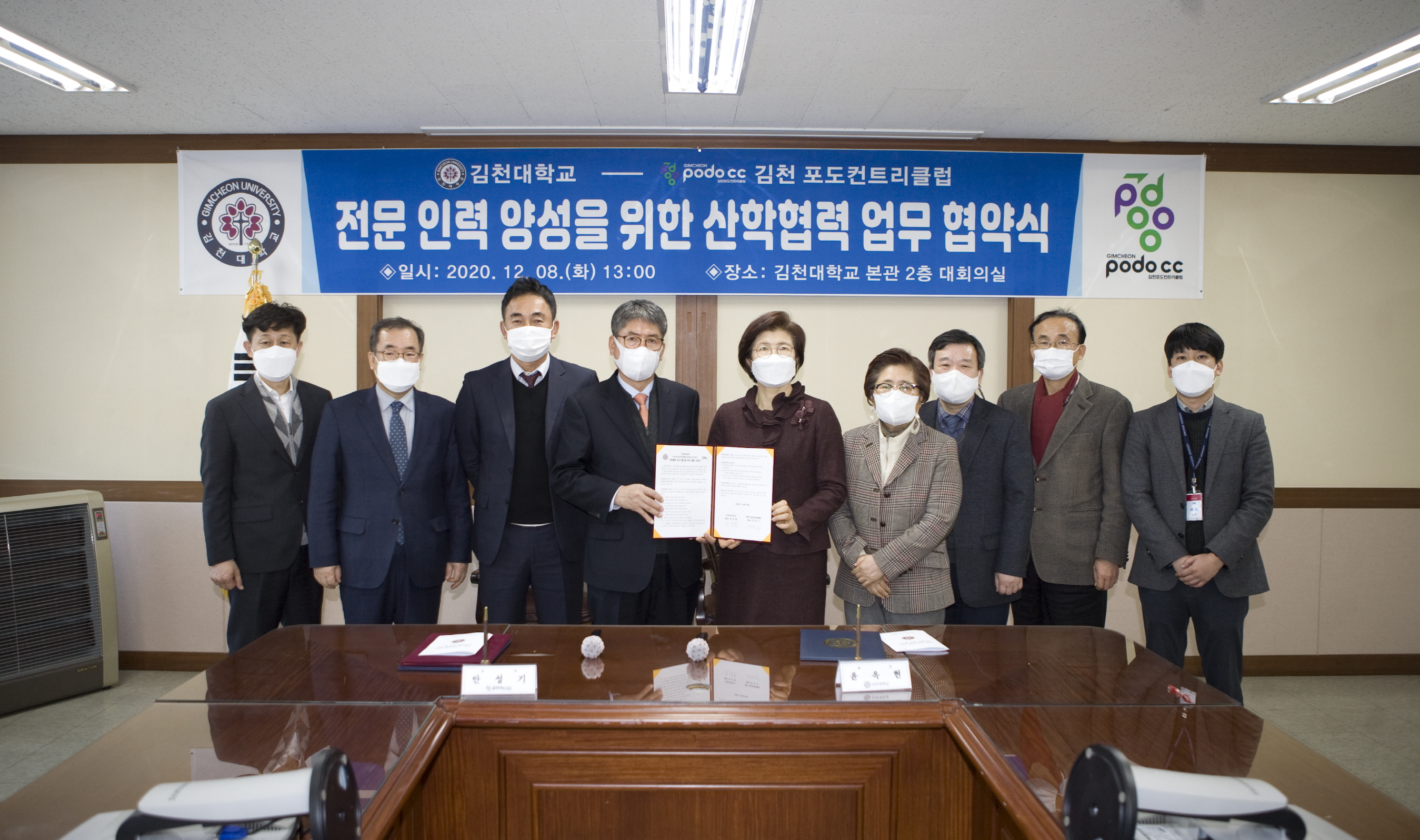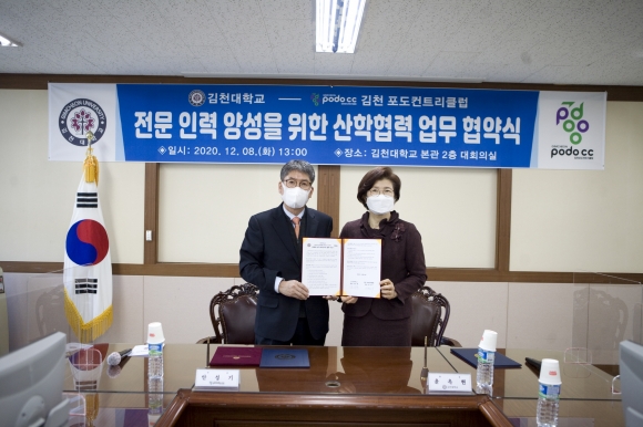 | 김천대학교(총장 윤옥현)는 김천포도컨트리클럽(대표 안성기)과 08일 김천대학교 본관 2층 대회의실에서 전문인력 양성을 위한 업무협약(MOU)을 체결했다.