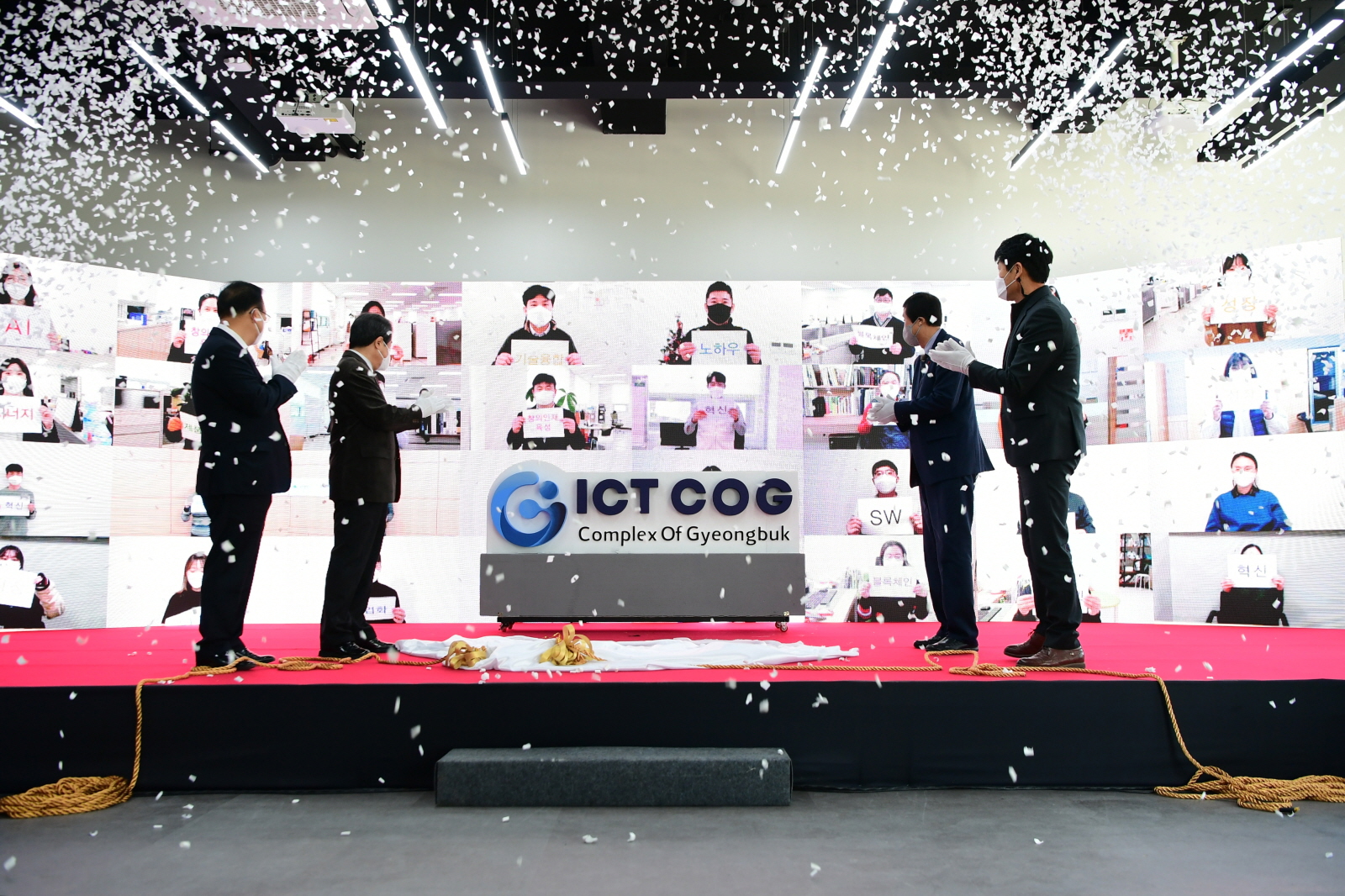 | 김천시(시장 김충섭)는 9일 김천혁신도시 내 지텍크리스탈파크에서 ICT 이노베이션콤플렉스 온라인 개소식을 개최하였다. 현 코로나 상황으로 네이버 TV를 통해 진행된 이번 개소식은 이철우 경상북도지사의 개회사 및 김충섭 김천시장과 이우청 김천시의회 의장의 환영사, 송언석 국회의원과 장석영 과기부2차관의 축사로 진행되었으며, 김천시장과 김천시의회 의장이 온라인 시청자 대표로 ICT이노베이션콤플렉스를 투어하며 소개하는 녹화방송에 이어 취업·창업 특강이 생방송으로 진행되었다.