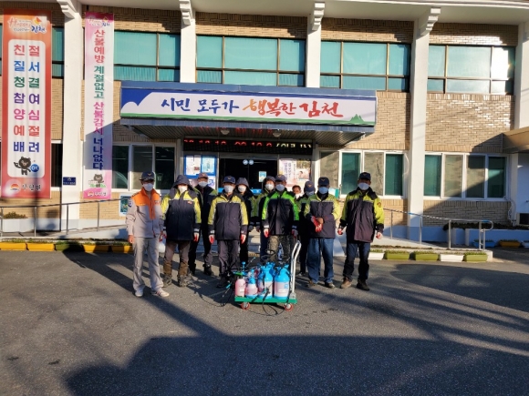 | 부항면 의용소방대(회장 신춘식)는 지난 12월 9일(수) 15명의 회원이 오전 일찍부터 코로나-19 예방을 위한 방역 활동을 실시했다. 오늘 의용소방대는 부항면의 관공서와 버스승강장 27개소를 집중적으로 소독했다.