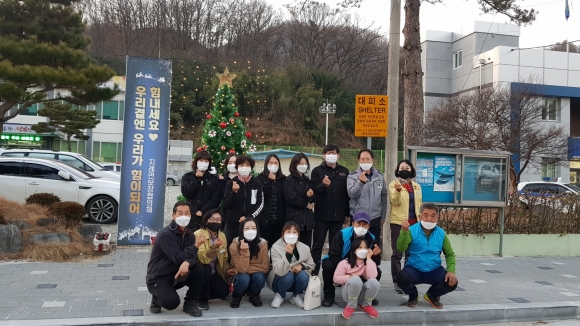 | 김천시 지례면지역사회보장협의체(위원장 이상경)는 12월 10일 지례면청사 전정에서 행복 트리를 만들어 불을 밝혔다. 코로나19 감염예방을 위해 참여인원을 축소하고 방역수칙을 엄수한 가운데 이루어졌다.