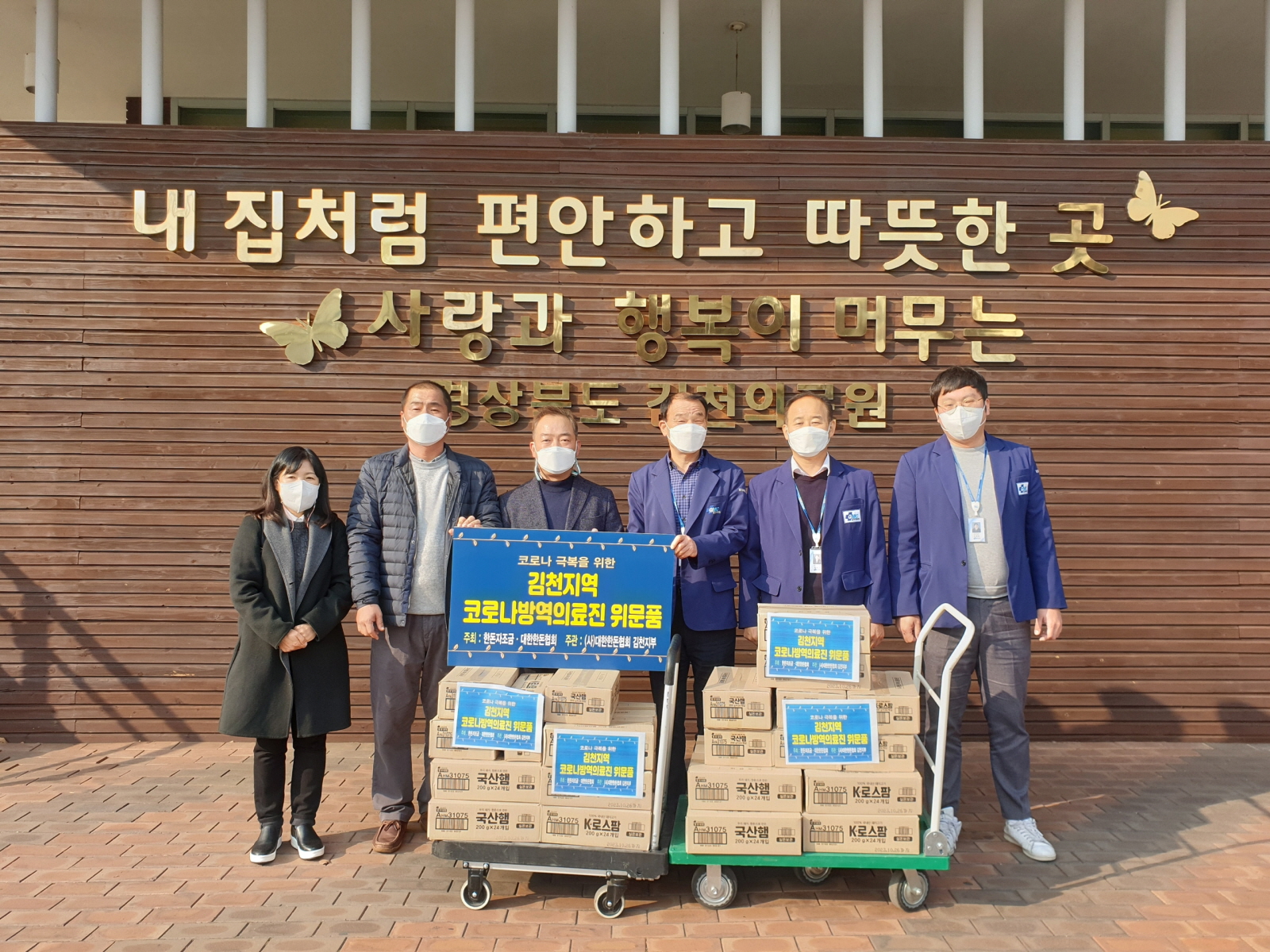 이날 한돈협회의 한돈 햄세트 나눔행사는 김천시에서 돼지를 사육하는 한돈 농가들의 기금과 한돈자조금 등으로 마련되었으며 한돈 소비촉진과 함께 최근 발생한 코로나-19 대응으로 어려움을 겪는 김천의료원 관계자의 노고를 격려하고자 추진되었다.