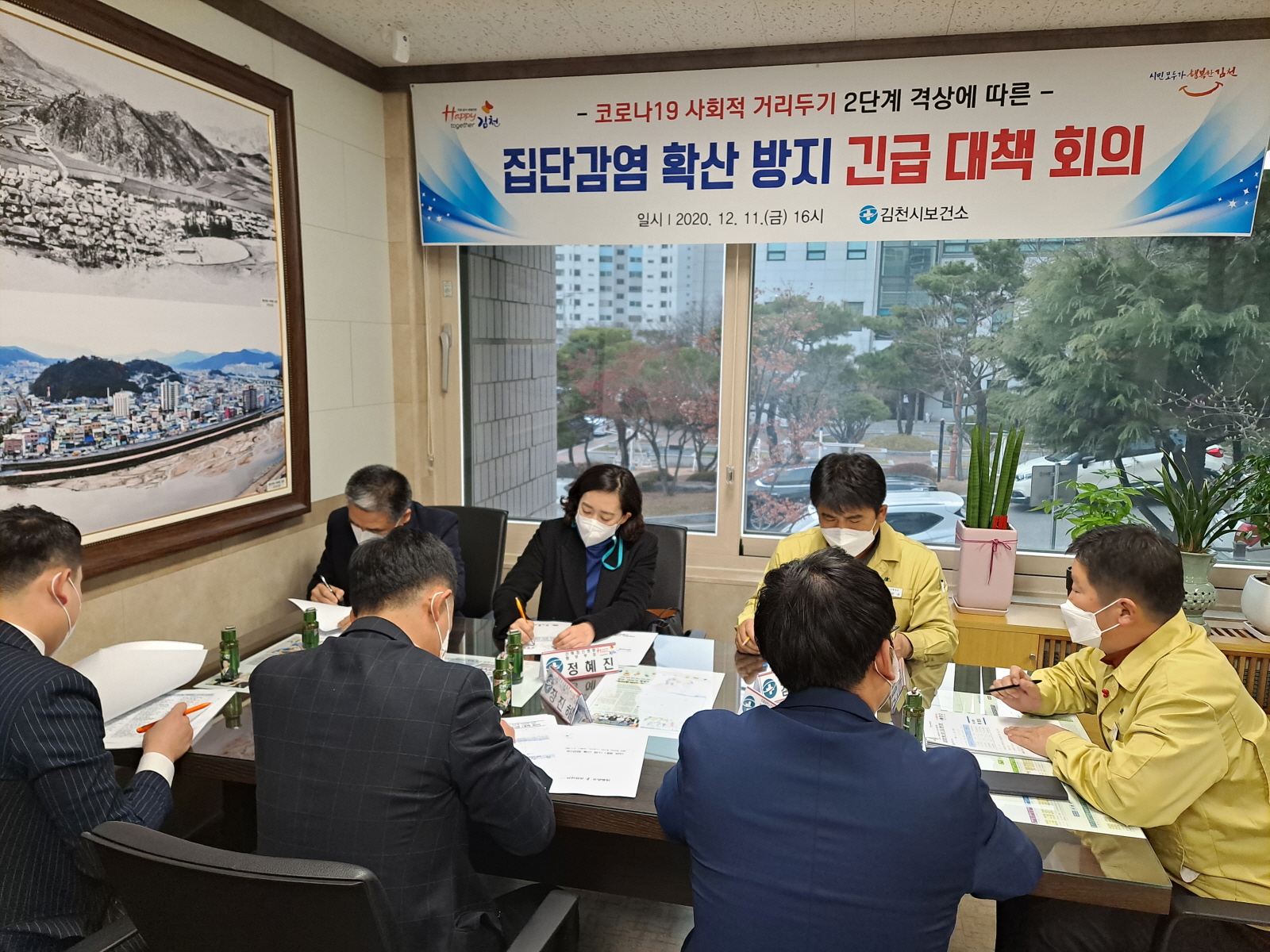 | 김천시(시장 김충섭)는 지난 12. 11.(금) 보건소 2층 회의실에서 사회적거리두기 2단계 격상 및 타지역 요양병원 등의 집단감염이 발생함에 취약시설의 집단감염을 방지하고자 병원 관계자 긴급대책 회의를 개최하였다.