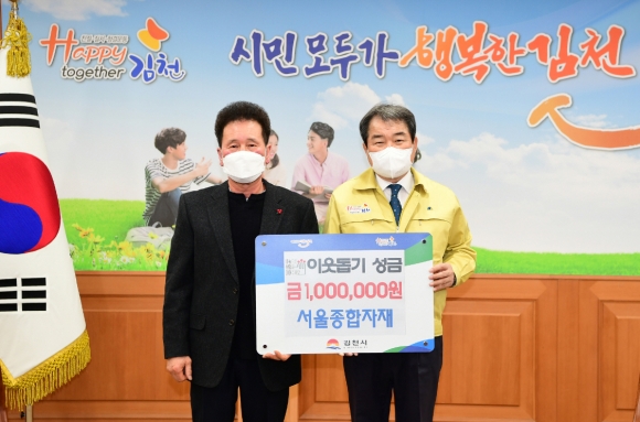 | 서울종합자재(대표 박의태)는 지난 12월 14일 김천시청을 방문하여 연말연시를 맞아 어려운 이웃들을 위해 써달라며 100만원의 이웃돕기 성금을 기탁했다.