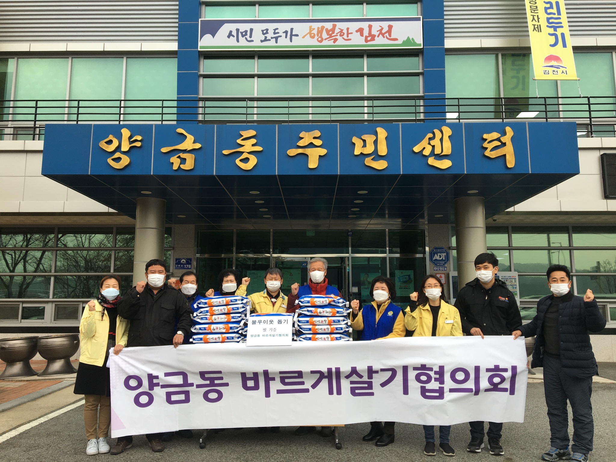 양금동 바르게살기협의회는 회원들이 아껴 모은 회비로 쌀 22포를 주민센터에 기부하였다. 이날 전달받은 쌀은 관내 소외계층 및 저소득 가구에 전달될 예정이다.