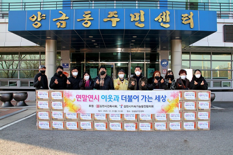 | 김천시지속가능발전협의회(회장 강종석), 김천시건축사회(회장 송동훈)는 지난 12월 21일 양금동주민센터를 방문하여 지역 내 소외계층에게 전달해 달라며 라면 50박스를 기탁했다.