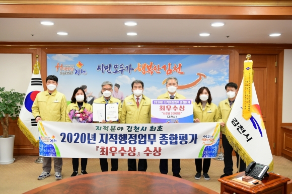 | 김천시(시장 김충섭)는 지난 12월21일 경상북도가 실시한 “2020년 지적행정업무 추진실적 종합평가”에서 김천시 최초로 최우수기관으로 선정되었다.