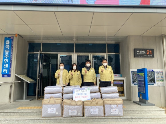 이날 제공한 이불은 율곡동 주민센터에서 발굴한 사례관리 대상자와 서비스연계 대상 가구에게 겨울철 난방비 부담을 덜고 따뜻한 겨울을 보내는데 조금이나마 도움이 되고자 지원하게 됐다.