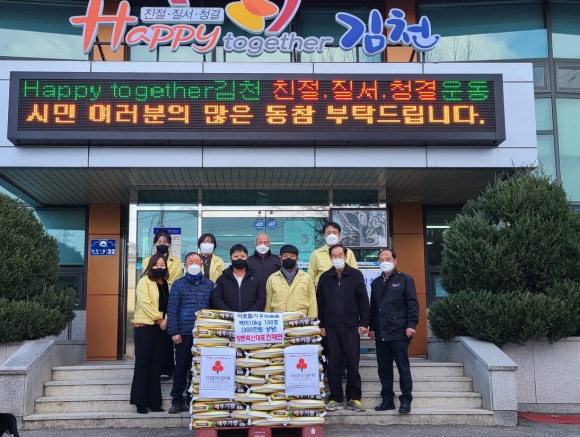 | 조마면에서 양돈업을 하고 있는 강촌축산 전재연 대표는 23일 연말연시를 맞아 코로나19로 인해 어려움을 겪고 있는 관내 저소득층 및 독거노인에게 전달해 달라며 백미(10kg) 100포를 기탁했다.