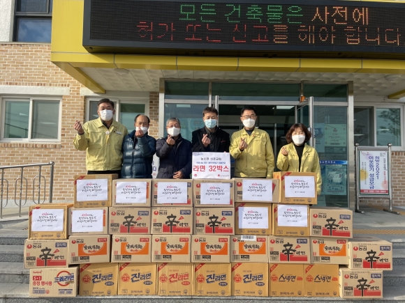 | 농소면 신촌교회(목사 김영수)에서 지난 28일(월) 면사무소를 찾아 어려운 이웃들에게 전달해달라며 라면 32박스를 기부했다.