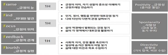‘블룸캠퍼스(아로마 마음챙김) 프로그램’은 간호학부(12월 16일) 2학년 재학생 52명을 대상으로 ZOOM 온라인 라이브 화상수업(12월 17일~ 12월 18일)으로 안전하게 운영되었다. 개인의 고유한 강점을 발견, 이해함으로써 삶에 대한 가치와 비전 수립을 위한 프로그램으로 참된 긍정의 의미를 이해하고 삶의 다양한 영역에서 자기다운 강점을 발휘할 뿐 아니라 바라보는 관점을 전환하여 자신만의 긍정 스위치를 작동하는 방법 터득하는 감정검사와 행복나무 교구를 활용한 긍정적 인생설계 프로그램을 진행하였다. 긍정심리 아카데미 프로그램은 다음과 같은 내용으로 진행되었다.