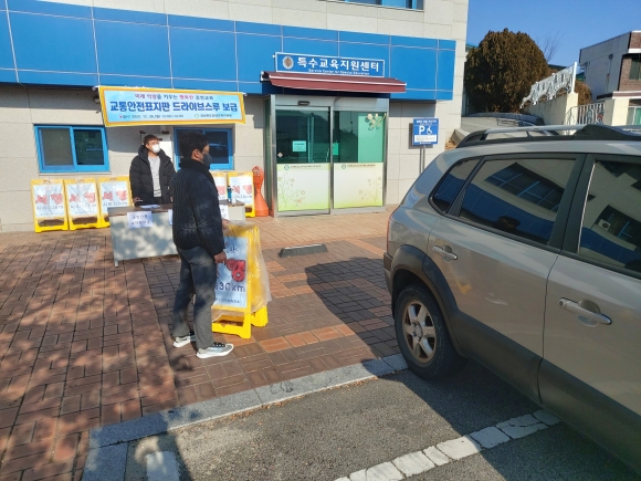 | 경상북도김천교육지원청(교육장 마숙자)은 12월 28일(월) 학생들의 교통안전사고 예방을 위해 관내 공·사립 유치원 15개원과 초등학교 30개교에 드라이브 스루 방식으로 교통안전 표지판을 보급하였다.